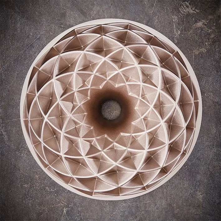 Der hochwertige Aluguss sorgt dank seiner Materialstärke für eine optimale Wärmeverteilung, für hervorragende Backergebnisse von innen und außen und garantiert eine gleichmäßige Bräunung. Die außergewöhnlichen Konturen der Backformen sind ein wahres Highlight und machen die Gebäckstücke zu einzigartigen Schmuckstücken.