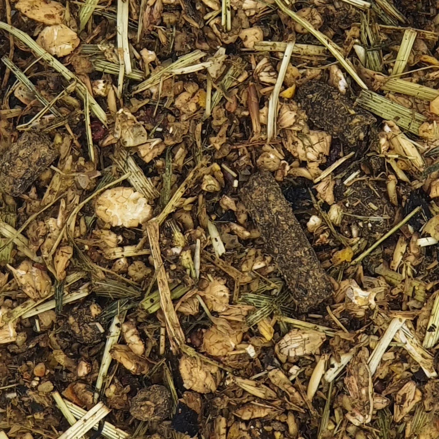 In Struktur E verbinden sich ausgewählte Zutaten wie verschiedene Ölsaaten, Seealgen, Obst und über 30 Kräuter zu einem wohlschmeckenden Müsli. Durch die besonders hohe Nährstoffkonzentration lassen sich Futterrationen rasch ausbalancieren, so dass bereits mit kleinen Futtermengen eine Vitalstoffdeckung gewährleistet ist. Durch den geringen Stärkegehalt ist es auch für Pferde, die unter Muskelproblemen oder Magen- und Darmstörungen leiden, bestens geeignet.